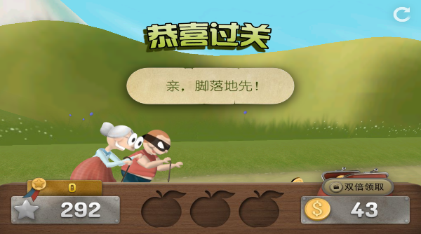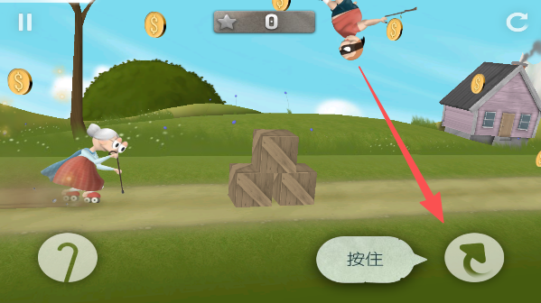 1、先在农场练手,左手右手慢动作,操控奶奶蹦蹦跳跳躲障碍,开启疯狂追苹果模式。