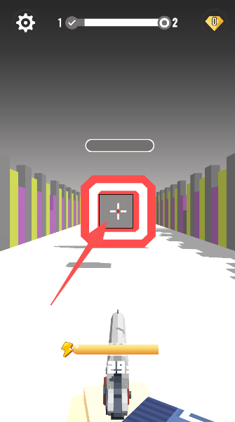1、端起枪只管瞄准红方块狠狠打,碎得越多闯得越远,但记得低头躲开飞来的障碍物。