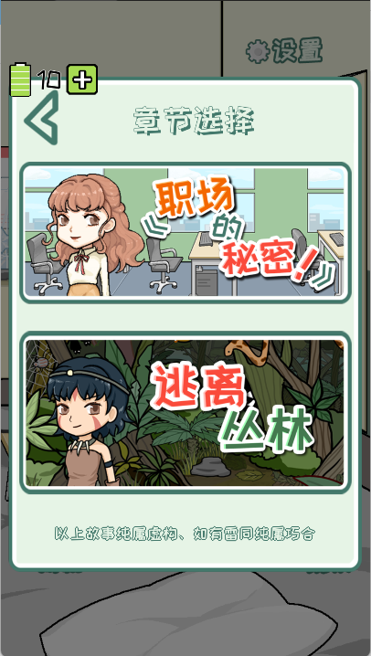 《职场的秘密》是一款以真实故事为灵感改编的闯关益智解谜游戏,采用简洁画风与章节式剧情设计,带来充满张力的推理体验。内容分为两大章节,第一章揭露职场黑幕并营救被公司控制的弟弟,第二章则探索神秘部落与离奇爱情传说。通过阅读剧情、寻找线索和破解谜题,不仅能感受烧脑挑战的快感,更能体会现实职场的深层寓意,在理智与正义的抉择中完成一场智慧与勇气的考验。