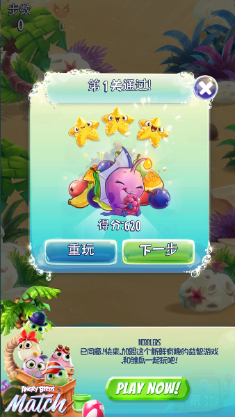 3、成功揍扁蜥蜴后,庆祝通关,看看得了多少分,然后满怀期待地迈向下一场果盘冒险。