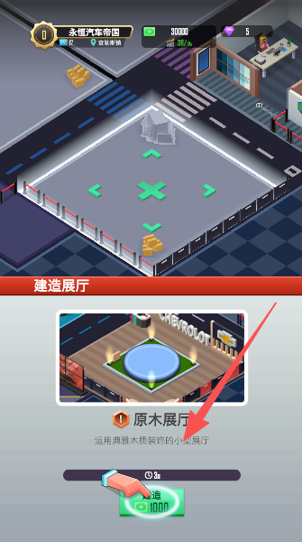 2、相中原木展厅的独特质感?果断点击建造,投入资金,看着地基拔地而起。