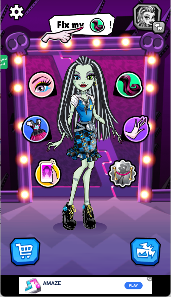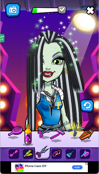 1、开局适配阶段,选择 Draculaura 等角色,熟悉魔法染发剂、摩丝等工具操作,尝试基础发型与眼妆搭配,明确 “个性塑造 + 风格适配” 的核心目标。