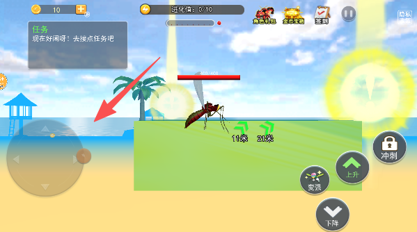 1、指挥你的小蚊子嗡嗡起飞,像微型侦察机一样,溜达着去找任务目标。