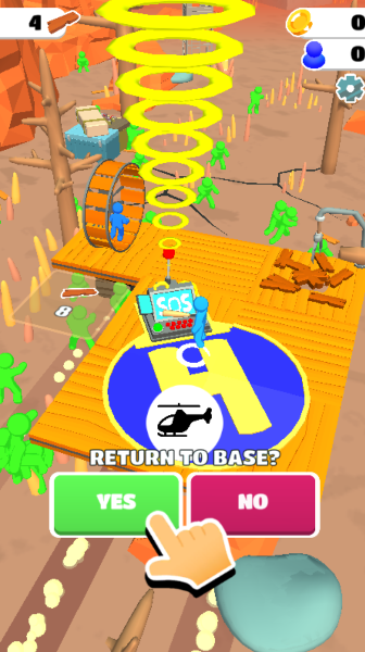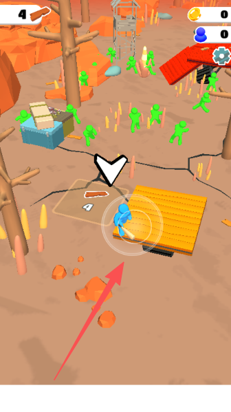 1、让蓝色小人赶紧用SOS设备呼叫救援,同时挥动武器,把想爬上来捣乱的绿色丧尸赶下海。