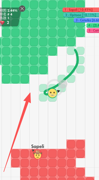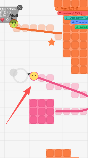 2、像个贪吃蛇一样拼命圈地,把空白处都变成自己的颜色,越大越好。