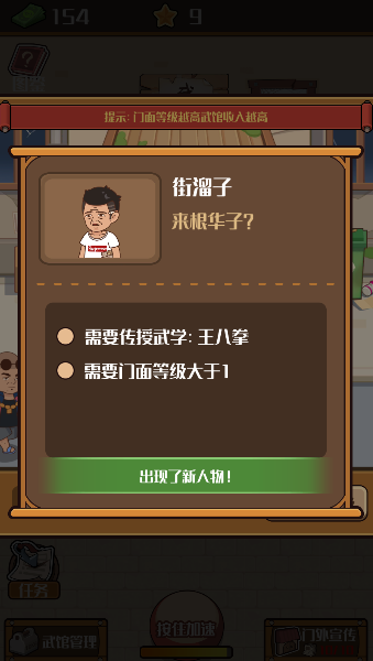 3、招学员不能只看武功,连穿花衬衫的潮人都收,武馆壮大就靠这些星星奖励啦。