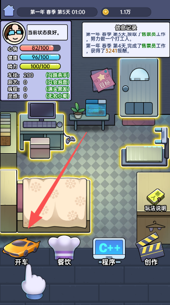 2、 精力、健康、心情三项生活属性需实时管理,属性状态直接影响工作效率与角色成长。