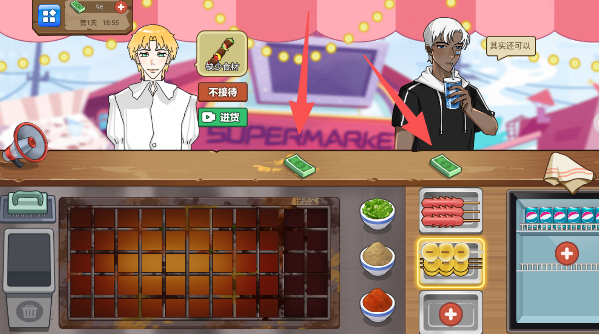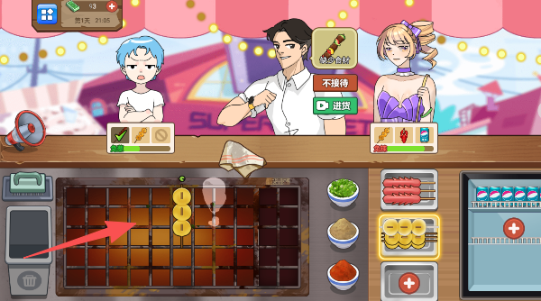3、收下金币赶紧补货,还能挑挑客人,专心服务那些点大单的“财神爷”。