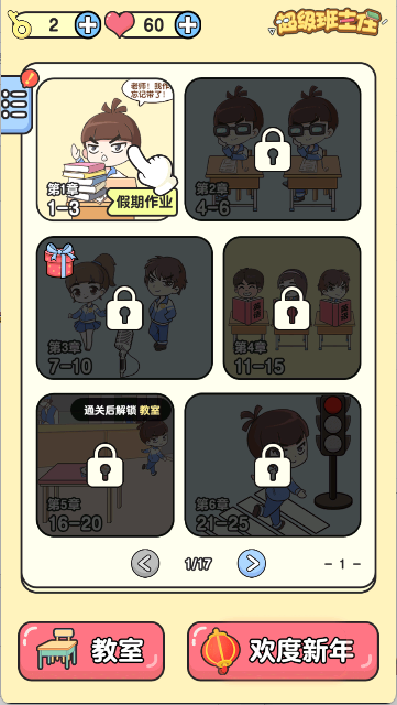 1、开局准备阶段,进入初始班级界面,通过引导熟悉观察与互动操作,明确 “培育学生打造优秀班级” 目标,了解学生性格与成绩提升的基础规则。