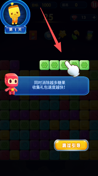 2、将两个以上同色糖果凑在一起消除,连线越长,分数炸得越欢,就像放烟花一样痛快。