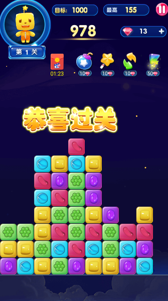 3、一旦分数达标,胜利的奖励便手到擒来,带着满满的成就感开启下一段甜美冒险。