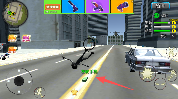 1、左手摇杆化身火柴人的方向盘,在楼宇间灵活穿梭,把整座城市当成你的游乐场。