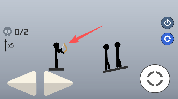 2、搓搓左边的虚拟摇杆,调好抛物线角度和手劲儿,瞄准那个欠揍的火柴人,蓄势待发。