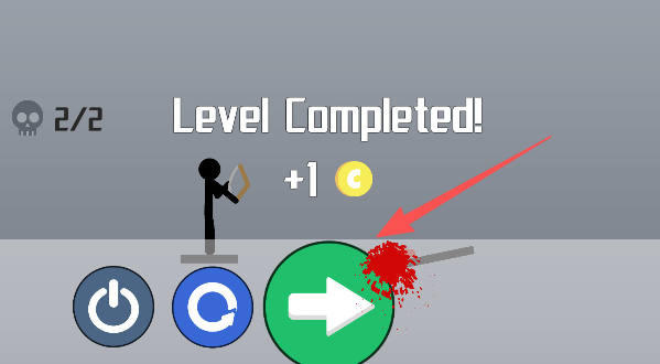 3、猛戳右边发射键,让武器飞出去,直到屏幕蹦出“过关!”的嘚瑟提示,戳绿色箭头领赏钱去喽。
