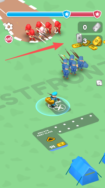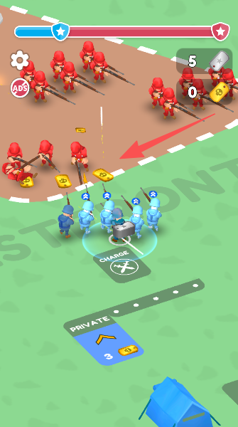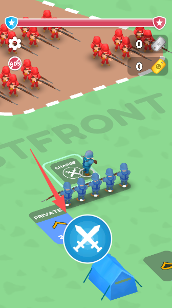 1、戳一下交叉剑标志,咱们的蓝色小兵立刻嗷嗷叫地冲向红方阵地,战意拉满。