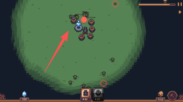 3、兽人嗷嗷冲过来?别慌,看着地炮“突突突”把它们揍飞,水晶毫发无伤,这关就算拿下啦。