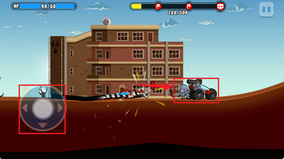 1、点击滑动左下角控制巨龙移动,向敌人冲锋进行攻击。