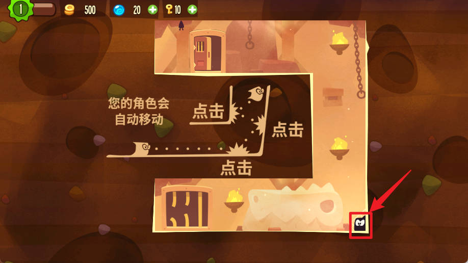 1、点击屏幕让角色自动移动,到达门口。