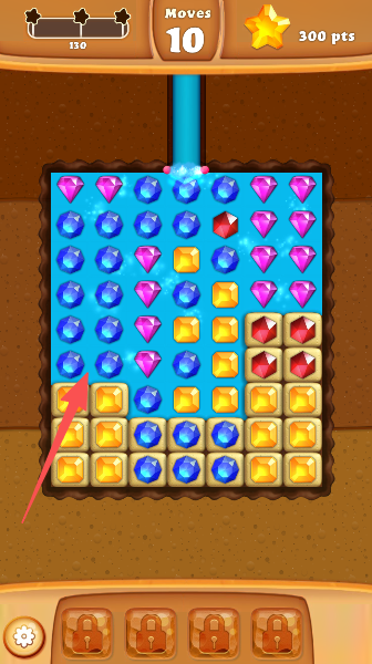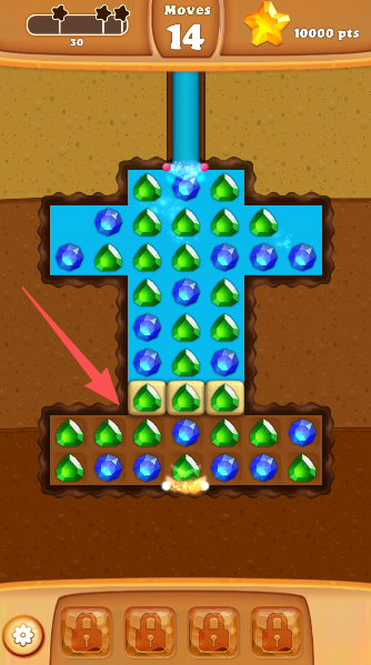 3、这里的消除规则特别爽快,只要同色宝石手拉手连成一片,不管多大面积都能一键清空。