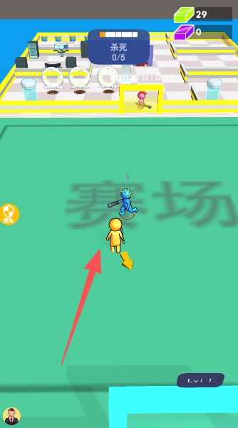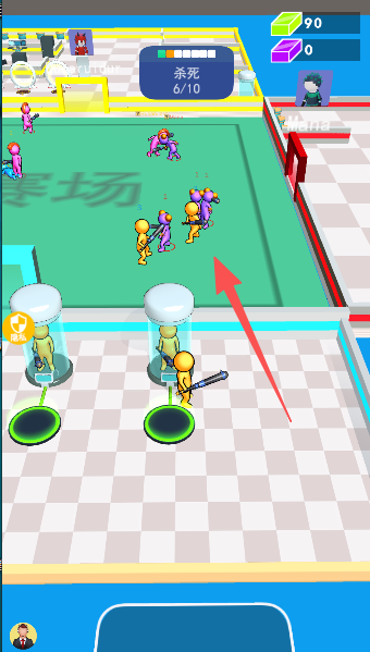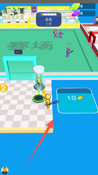 1、接到干掉五个对手的任务后,立刻冲进赛场,盯准其他颜色的火柴人就是一顿猛攻。