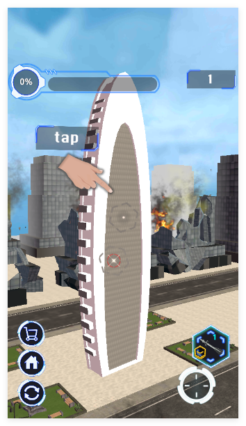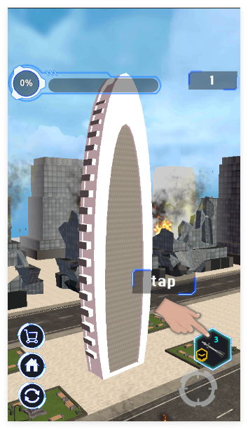 3、根据建筑物的剩余状态补充攻击,持续破坏直至建筑破碎不堪,尽可能提升破坏度,最终获取更高游戏分数。