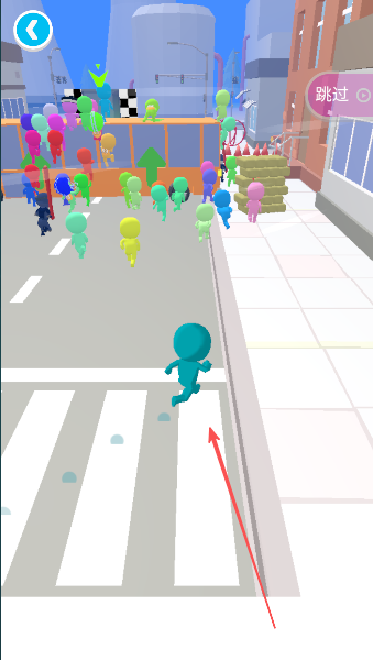 1、操控角色在人群中灵活穿梭,躲开各种障碍,朝着醒目的绿色箭头一路狂奔。