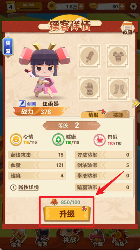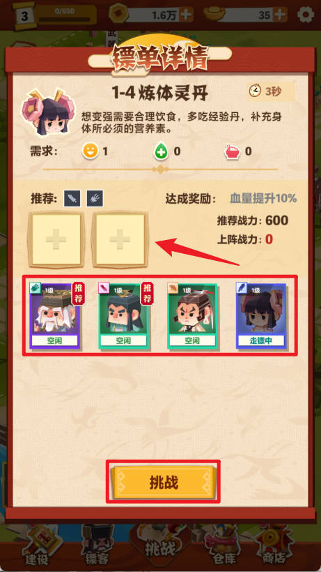 3、可利用仙丹对镖客进行升级,提升战斗力。