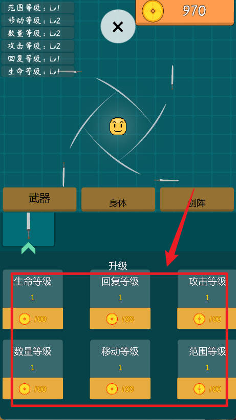 2、设计道具成长机制,场景随机刷出数量、射程、护盾等道具,拾取即时强化战力,无需长期养成。