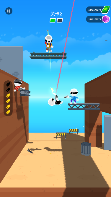 1、以“跳跃式射击+差异化关卡”为核心,30个关卡环境各不相同(含炸弹、深坑),需通过跳跃规避危险、寻找射击角度,打破传统射击闯关的固定模式。