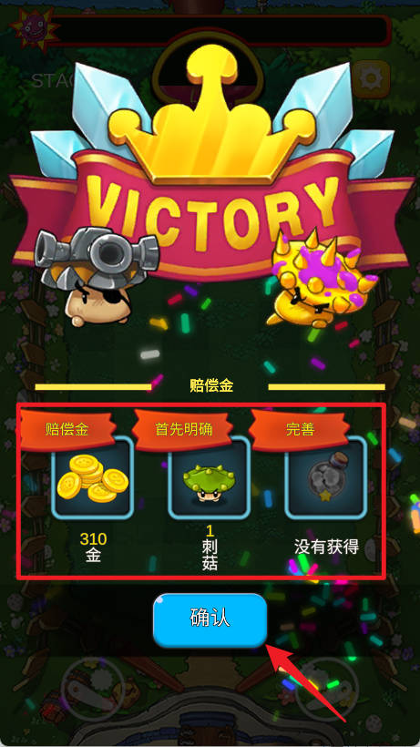 3、获得胜利后,获得丰厚奖励,点击“确认”领取。