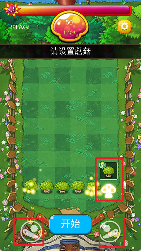 2、点击布置攻击治疗减速类蘑菇构建防线,旋转底部挡板弹射细菌触发物理碰撞伤害,抵御顺着管道入侵的敌人。