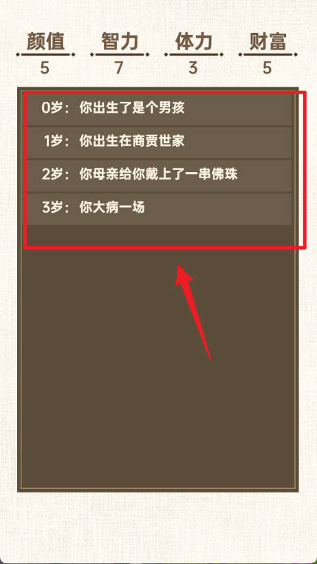 3、点击屏幕经历人生,发生随机事件推进人生。