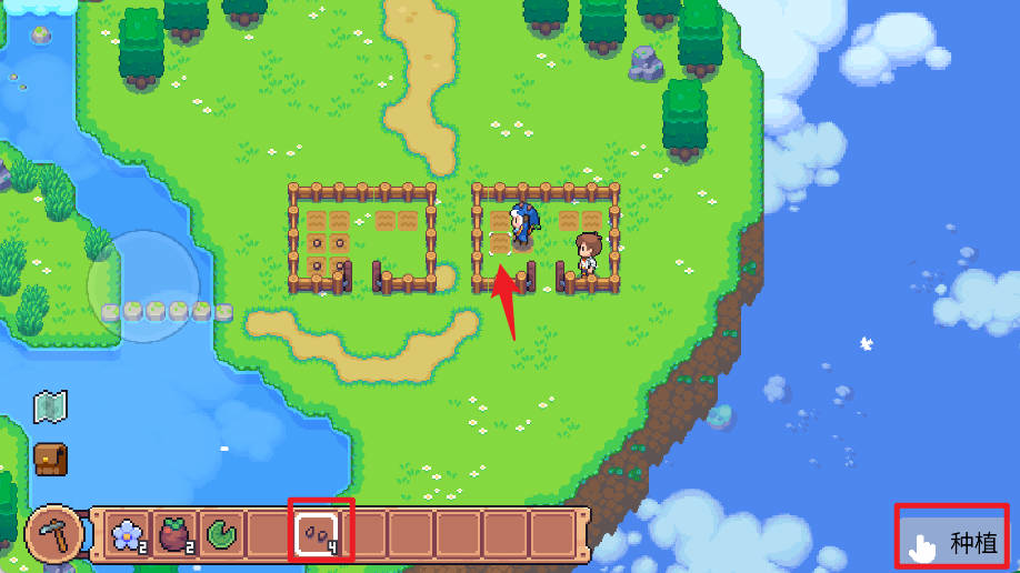 3、点击背包里的种子,对土地进行种植。