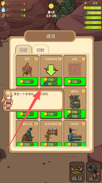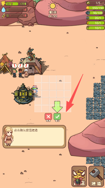 3、果断点击确认建造,看着村民们吭哧吭哧开始手摇发电,终于不用再摸黑对抗僵尸了。