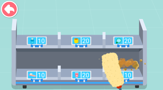 3、放货物的货架弄干净啦,点击右边的鸡毛掸子将灰尘扫干净。逐步掌握便利店完整经营流程,积累运营经验。