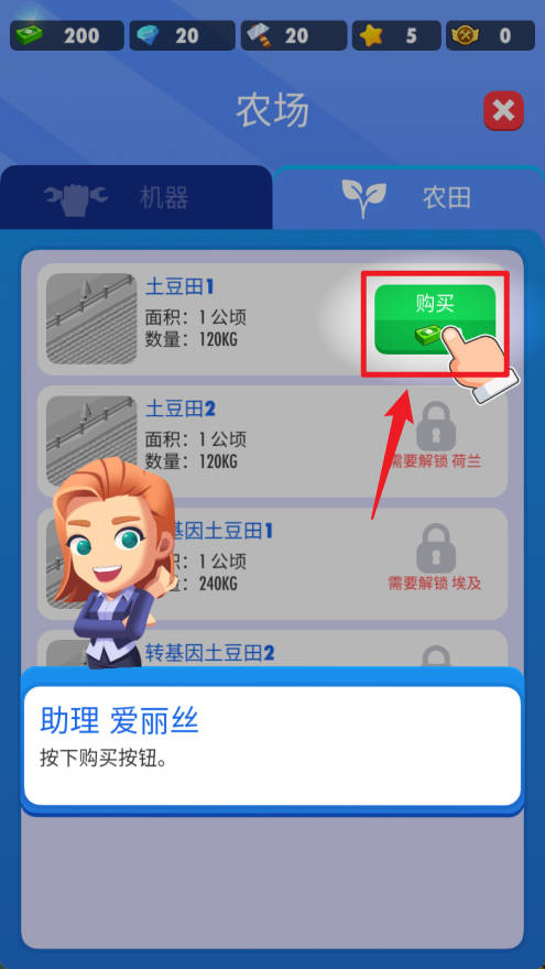 1、点击购买土豆田开始种植土豆。