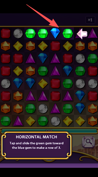 1、只要把三个或更多同色宝石连成一条线,它们就会“嘭”的一声消失,超解压。