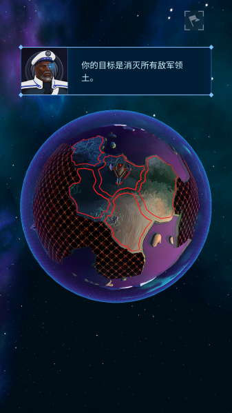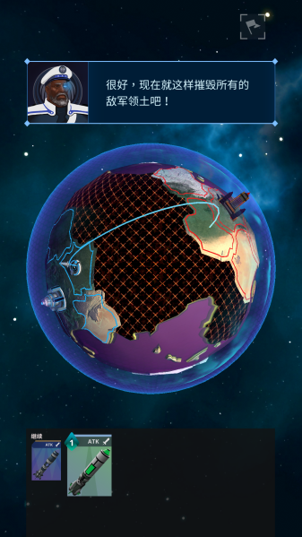 2、认清战场标识,星球表面红色框为敌方据点,你的核心目标是彻底摧毁这些区域。