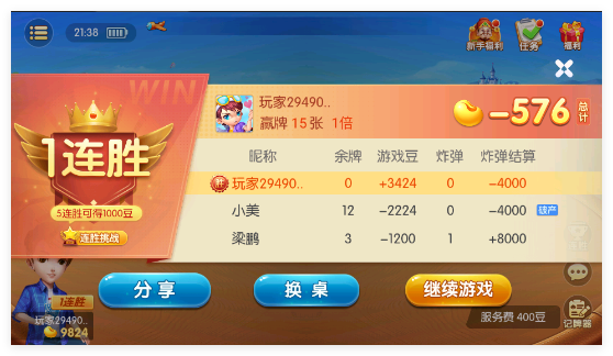 2、好友同玩模式便捷省心,可自主创建房间邀请同伴,不受游戏豆约束,随时随地开启专属娱乐时光。