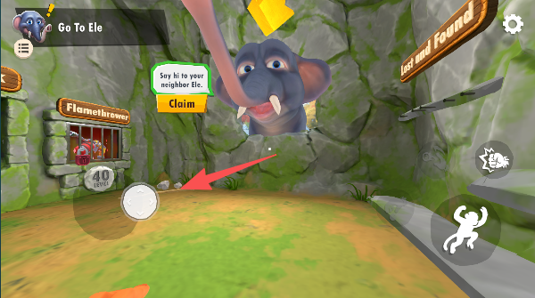 2、左摇杆控制猴子溜达,右爪子图标负责做鬼脸、挠痒痒,各种搞怪动作随便耍。