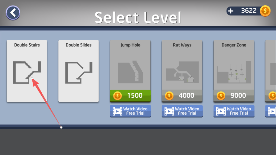 1、进入游戏后,选择关卡,这些关卡都是可以通过金币购买的。