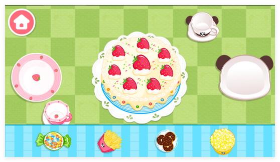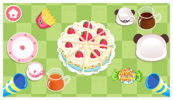 1、进入游戏后,从桌布餐具到蛋糕零食饮料的选择,全由你自己来决定。