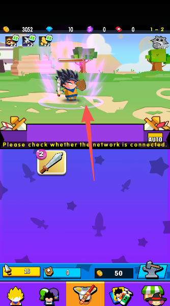1、你的英雄自带酷炫紫色光环,会自动追着粉色小怪暴揍,数字蹦得满天飞。