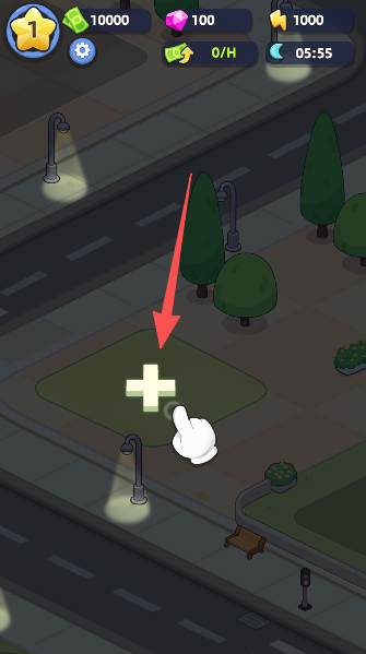 1、进入游戏先找块空地,点一下带加号的地皮,准备大展拳脚搞建设。