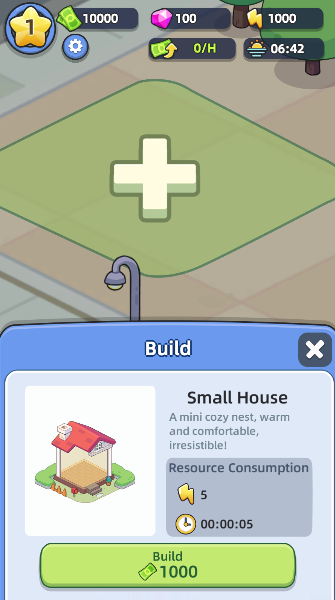 2、在弹出的菜单里猛戳Build键,选好房子就能开工,城市蓝图等你实现。
