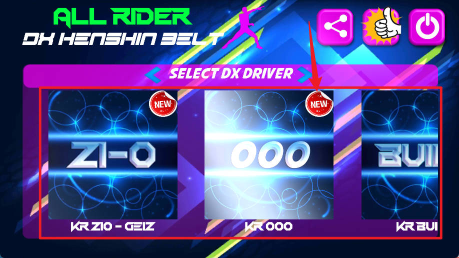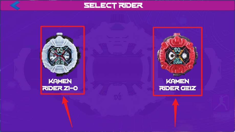 2、点击选择下方变身道具,不同的道具会出现不同的假面骑士。