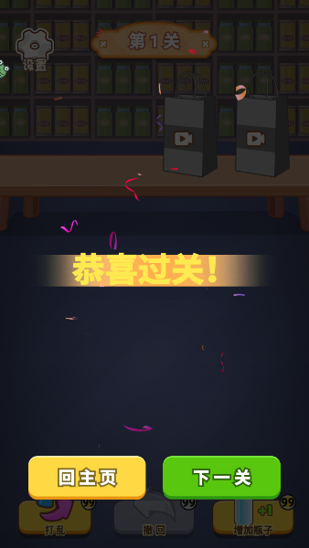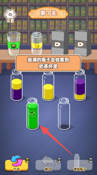 3、重复操作调好所有颜色,看着五颜六色的奶茶杯排排站,超有成就感,点一下就能冲向更难的下一关。