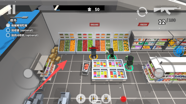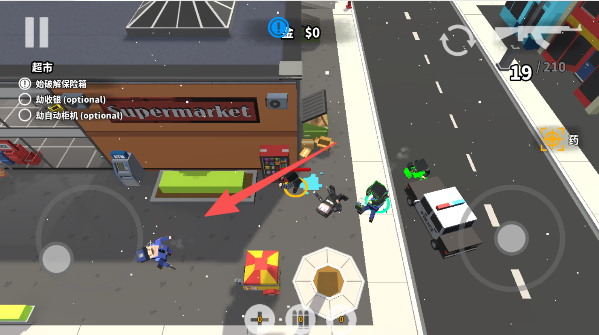 1、挑个你中意的方块好汉,大摇大摆地走向目标超市,准备开启一场“零元购”大冒险。