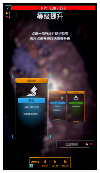 1、自动射击机制降低操作门槛,聚焦生存策略与天赋搭配,无需复杂操作即可享受爽快战斗,适配移动端游玩场景。