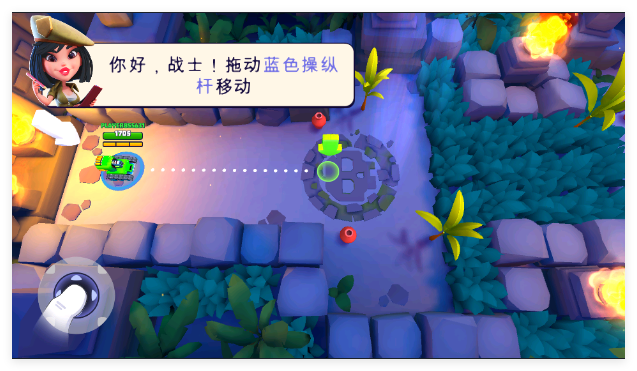 1、进入游戏后,拖动蓝色操纵杆移动坦克。